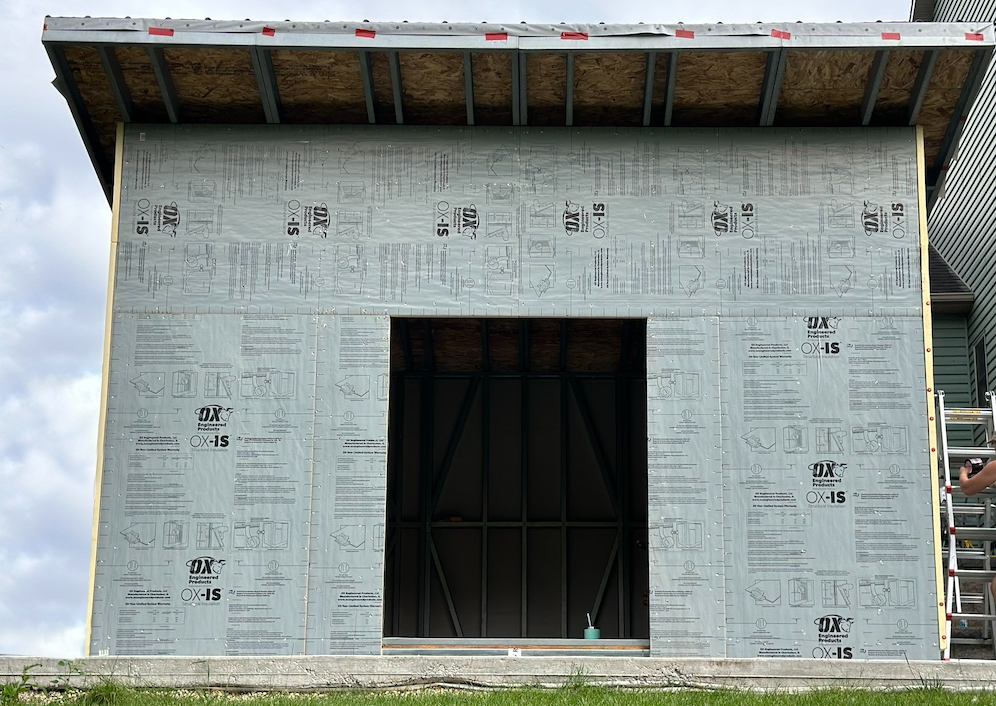 The project team selected OX-IS structural insulated sheathing from OX Engineered Products for the job. The OX-IS system combines structural sheathing, continuous insulation, an air barrier, and a water-resistant barrier into a single integrated solution, simplifying installation, reducing labor requirements, and improving thermal performance.